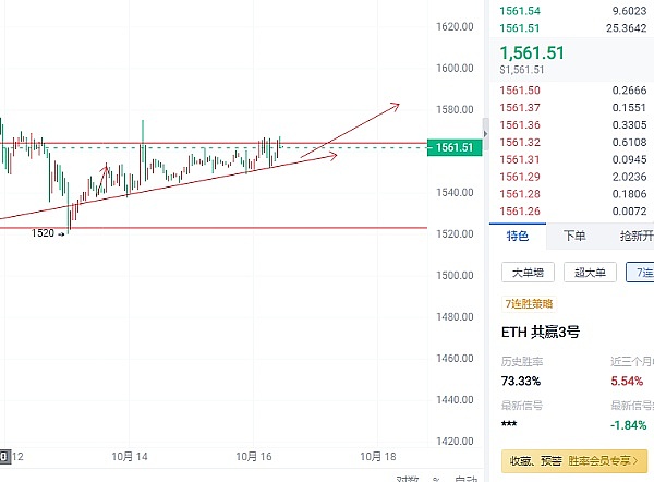 根据当前的走势,建议在1560到1565附近布局多单,并设定目标在1580到1590附近。