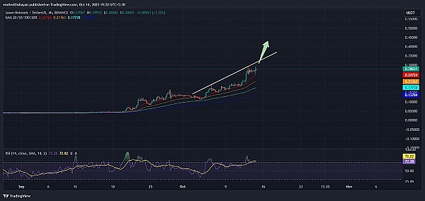 在最近几个小时内,买家表现积极,促成了整合的突破时刻。如果价格飙升至0.3美元以上,可能会验证三倍的涨幅,而LOOM的价格有望达到0.9美元的高点。