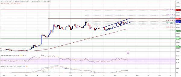 在BTC/USD货币对的小时图上,形成了一个关键的上升通道,其阻力位在29,000左右(基于Kraken数据源)。