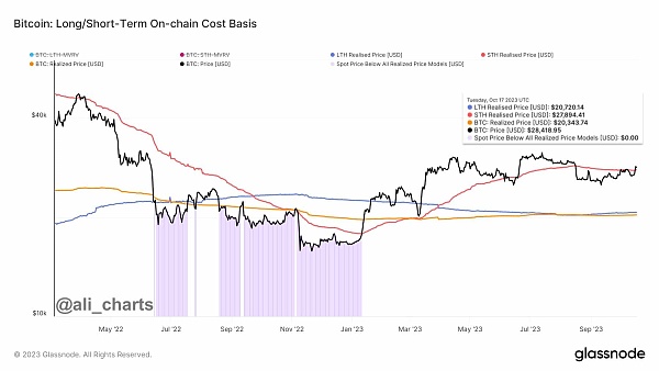关键价格点被定义为短期持有者的成本基础或短期持有者实现价格(STH RP)。在历史上,这一价格点一直是比特币上升趋势中的支撑位。