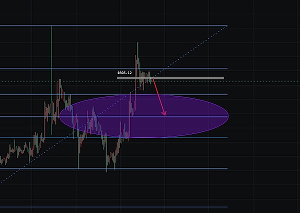 以太坊。昨日白盘横盘蓄势,价格拉升80后反复给到僵持放缓信号,欧盘4小时收线强势企稳,一度强拉至1630附近才有所回吐。目前小时图来看,币价双休日重回墨迹盘整,BOLL通道有收口迹象,附图MACD快慢线呈死叉形态有待放量,且昨晚至今1600关口多次给到虚晃试探,操作思路上,李隆建议围绕昨高牵制,承压去短空一次,进场切记做好分批风控计划。