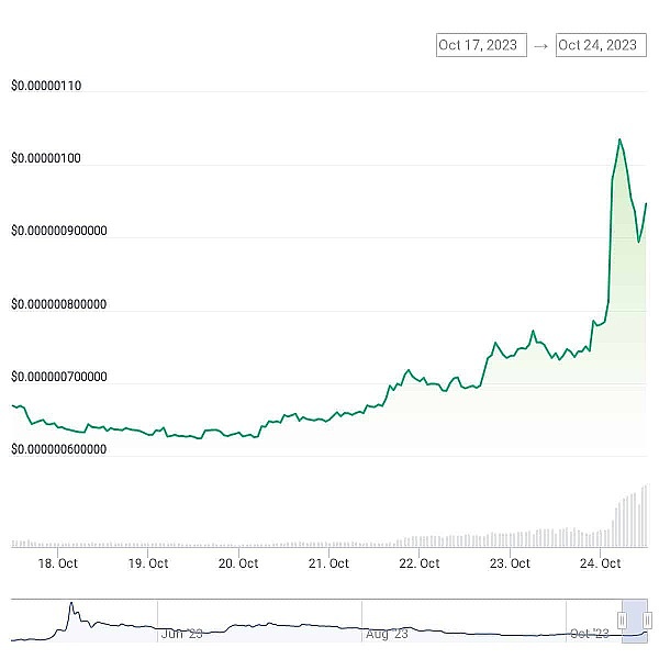 代币销毁的消息已经得到了Etherscan这一分析平台的确认。这一消息对PEPE代币的价格也产生了积极影响。根据CoinGecko的数据,过去24小时内,PEPE代币价格上涨了20%,达到了0.0000008美元。