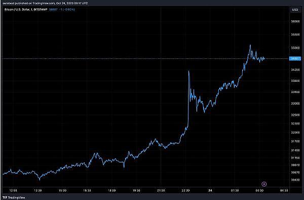 比特币价格在多个交易所突破了35,000美元的水平,并保持令人印象深刻的看涨势头。激增的原因与对贝莱德现货比特币ETF可能获得批准的预期以及对其引发牛市的预期有关。