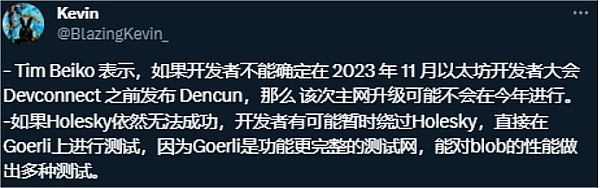 如果你关心坎昆升级的最新情况,我建议大家留意在11月13日(Devconnect大会开始日)之前是否会发布有关G网部署的新闻。