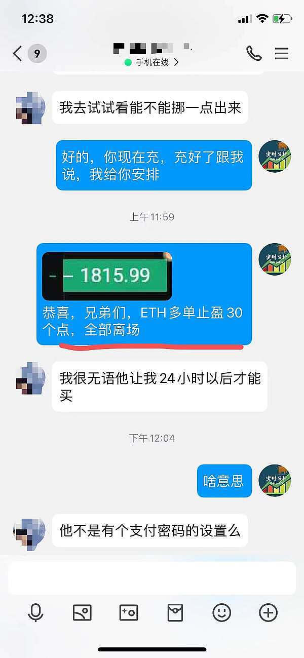 恭喜,早晨eth 在现价1783布局的多单,完美到达止赢目标1813,再次止赢30个点,这位新朋友昨天布局也是完美拿下38个点,2单一共盈利68个点,看到实力后也是再次加,金跟我布局操作,如下图:如果你操作不理想,想跟我操作,记得及时找我!