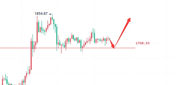 以太坊日线目前在1800一线附近吸筹,日线双针探顶出现些许回踩吸筹比较正常,KDJ在80处黏合,macd量能收缩,整体日线上以太坊相对疲软。短线四小时上关注1780第一支撑,1740第二支撑,虽然空头量能在加速放量,但是以太坊价格并没有过多的回调,整体保持在1780附近吸筹,综合上述建议回调支撑布局即可。