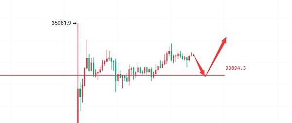 比特币突破高位35000之后,开启高位横盘震荡,日线J值两次支撑KD二线支撑上行,日线级别强势多头护盘毋庸置疑,支撑位也来到32500一线,CCI超卖拐头之后今天也来到100下方,日线多头趋势依旧强势。短线四小时上价格搞横盘吸筹,在33800一线形成短线支撑,于349000形成一个小时级别的高位区间震荡吸筹空间,并且boll三线开口向上运行良好,综合上述整体建议比特币日内区间操作。