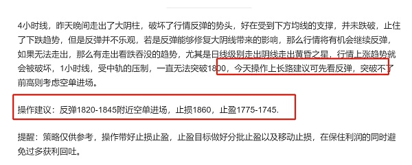昨天长路在文中给出的关注1800的压制,可以在1820附近进空的策略,结合实时策略,跟上操作的朋友多空都有一波收益。