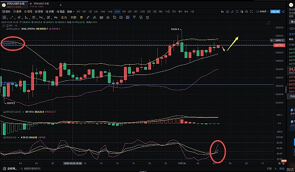 半夜行情来了一波反弹,突破大饼和以太上方压力位,现在行情处于一个横盘蓄力阶段,看30分钟线,BOLL轨道呈一个缓张口向上的状态,KDJ形成金叉向上发散,结合整体数据分析,早间行情应该是一个回踩看多的趋势。