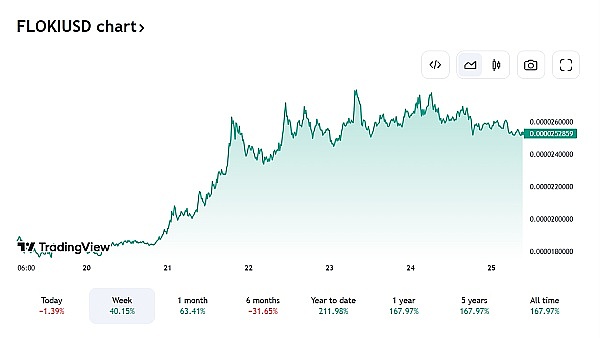 尽管近期有一些下滑,但 Floki Inu (FLOKI) 从年初至今的业绩增长了 97%,这表明了其韧性和潜力。