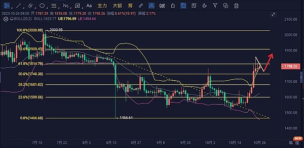 因此,今日以太坊的短线合约交易策略是在回撤至1775区域时多单进场,止损设在1755区域,目标看向180-180区域。