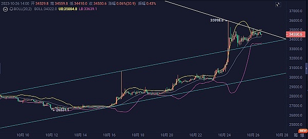 对于回调位置,需要关注下方日线支撑位34200以及短期中轨支撑位33800。
