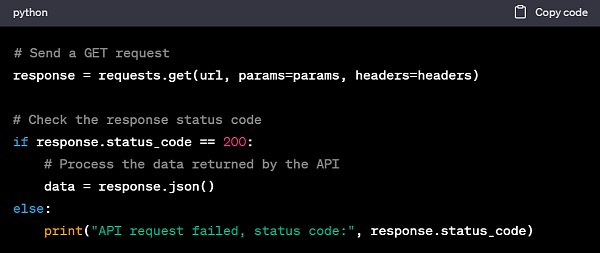 3. 发送请求:使用 requests 库发送 HTTP 请求,根据 API 要求选择 GET、POST 或其他请求方法。处理响应以获得 API 返回的数据。