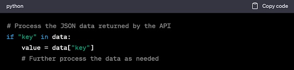 4. 处理 API 响应:根据 API 的响应格式,提取和处理所需的数据。通常,API 会以 JSON 格式返回数据。