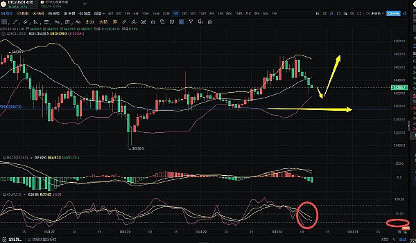 根据最新数据显示,在凌晨的行情中,BTC和ETH都出现了小幅上涨试探,BTC已经突破了一个压力位,目前稳定在了34000一线,而ETH也站稳了1780上方。BOLL轨道张口向上发散,MACD形成了上穿金叉趋势,KDJ金叉向上发散运动。综合数据分析,早间行情的回踩幅度不会太大,整体趋势还是看涨的。