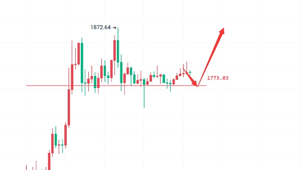 以太坊周线同样连续收阳,完成周线级别的多空力量转换,macd快慢先底部金叉上涨,KDJ三线向上发散。日线上同样在高位迟滞,但是K线价格已经保持高位吸筹,整体偏向多头,日线支撑1790一线。四小时上保持boll震荡,并且1780一线有明显支撑力度,附图指标MACD空头量能收缩,随时有转换放量多头的准备,快慢线在13.5附近粘合,一小时上整体承压于1820一线,并且价格来到新的上行趋势中,底部随着时间逐步上移。综合上述建议以太坊日内做多为主。