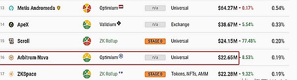 抽象以太坊Layer2的流动性集中在Arbitrum、Optimism等正统的Rollup项目上,这些项目的今天主要版本必然不会和Celestia集成。而Arbitrum Orbit只是一个类似Arbitrum Nova的次要版本,大概率无法与几大“正统Layer2”比肩。Celestia祭祀能够引流此类“次级Layer2”,似乎也带不来多高的价值捕获。(Arbitrum Nova目前只有约2200万美元的TVL)