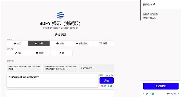 目前,3DFY正处于开放测试阶段,并提供免费试用。登录平台后,您可以选择要生成的模型类型,目前有多种选项可供选择。3DFY将为用户提供更多选择和便捷的方式来创建各种高质量的3D模型。