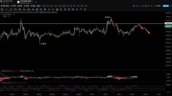 在当前市场中,比特币(BTC)和以太坊(ETH)价格呈现宽幅震荡走势。比特币的支撑区间为34000—34300,而以太坊的支撑区间为1770—1790。从短期来看,两者都面临一定的压力,特别是比特币。由于前期价格下跌,不少投资者抱有较高的成本,因此想要突破当前的价格区间,需要一定的震荡调整来消化这部分筹码。从小时线来看,价格在布林通道内运行,KDJ指标和MACD指标均向上发散,多头势头尚未释放,因此预计仍有上涨的动力。对于比特币,建议在35300附近开空,目标区间为34200—34500;而对于以太坊,建议在1844附近开空,目标区间为1810—1800。
