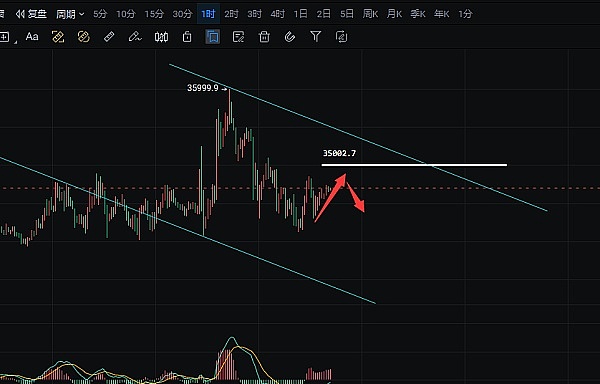 根据分析,建议在34700-35000附近分批开空,目标位于34200-34000附近。