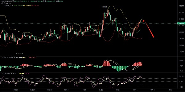 根据当前市场情况,建议在ETH的价格在1840-1830附近进行空单操作,目标设定在1790-1780,同时设置风险控制在1880。