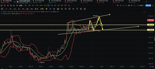 针对以太坊,建议在1880附近进行空单操作,目标为1832附近的水平支撑。若成功突破该支撑,可以继续关注1786水平。止损位设置在1918。