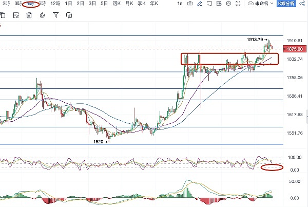 以太坊的趋势与大饼基本一致,对于周末行情,以太坊给出了与大饼完美契合的思路。底部区域在1760-1780附近,本次周末行情以太坊的涨幅超过了120个点!根据目前的行情,与之前的分析有些变化。激进支撑位在1820-1840附近,稳健支撑位在1760-1780附近。压力位激进关注1890-1910附近,稳健关注1930-1950附近。参考日线和斐波那契线的顶部关注2000-2020附近。以上是丞丞当天给大家分享的思路,可以参考但需要理性做单。
