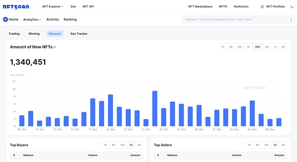 就 NFTScan 数据来看,截至 11 月 7 日,Arbitrum 网络上已累计发行 NFT 资产 19,793,811 枚,NFT Collection 29,340 个,产生交易记录 56,925,931 条,有过交互的钱包地址 3,732,089 个,总交易额 33,280.45 ETH。