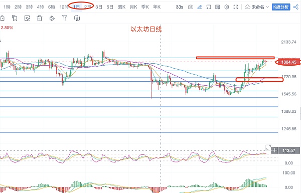 以太坊日线出阴且收出长下引线,通过日线可以看到1890-1910附近在进行多次突破性尝试,四小时图看此时MA30/MA60日均线上行,短周期将存在小幅回落继续关注下方支撑1850-1870附近,若是激进位置不敢进场有所担忧的朋友,可以参考稳健支撑1810-1830附近,上行压力位通过日线可以给出1930-1950的稳健压力,一旦突破上行空间将会被打开2000-2020将会很快,涨幅过程中必定存在回落关注底部支撑1760-1780附近,以上便是当天以太全部思路,比较完整,行情怎么走,我们怎么去应对,没什么好怕的,重要的就是将做单手法加上思路捋清楚。