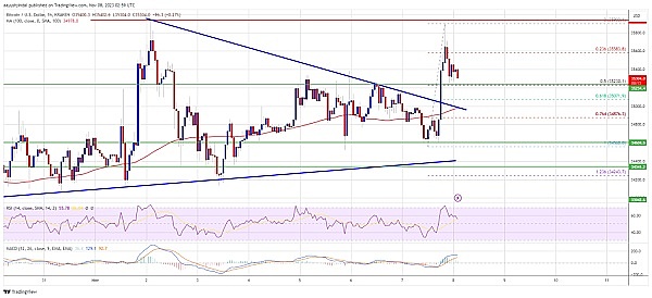当前的交易价格仍高于35,000美元,并且保持在100小时简单移动平均线之上。