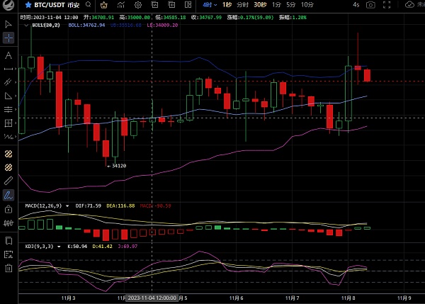 11月8日、BTC,ETH行情解析及操作文章编辑时间2023.11.8 11:30分,所有观点不构成任何投资建议!仅供学习交流