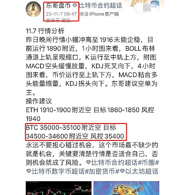 大饼早间给出分析35000附近空单,晚间达到止盈点位34600,斩获400点。恭喜跟上的小伙伴。每天稳健一两单,实力全网公开关注东哥盘币。bch777666