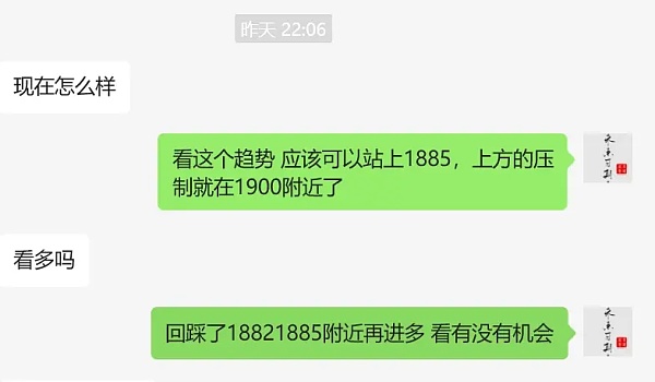 昨天长路在文中和视频中都给出了昨天反弹可先进空,不破下方支撑可多单进场的策略,结合实时策略中给出的1882附近的多单,跟上操作的朋友,多空都有收获,如果你把握不住行情,经常套单、损单,那么可以找到长路。