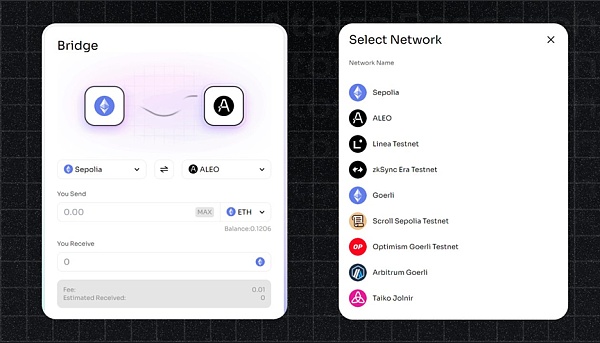 8.3.1 Izar Bridge:使用https://testnet-bridge.izar.xyz/bridge在可用网络和Aleo之间转移测试代币。