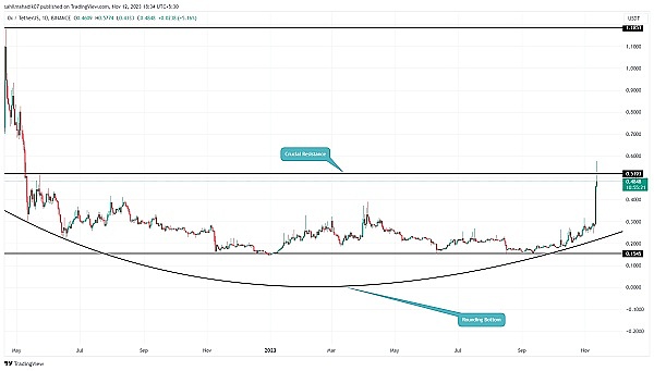 在最近成功突破0.51美元关键阻力位后,上涨趋势保持势头,并且预示着看涨突破的可能性。鉴于上升趋势的持续,突破反弹有望达到1美元的心理关口。