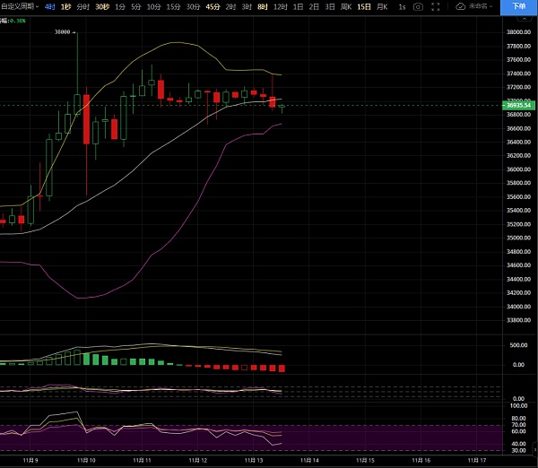 上周由于自己的一些事情要去处理,只有周一下午的时间段写的文章,也告诉了操作点位的位置,不知道看文章的币友有没有跟上上周的趋势,昨晚大饼又平平淡淡的度过一晚上,现价依然是维持在37000附近徘徊,从目前行情来看,币价在稳定在了高位,暂时下不去。昨天周日,行情也是一直稳定在37000附近上下震荡,日线虽然走出二连阴,但是所表现的回撤力度并不大。咱们看看今日盘面走势情况。