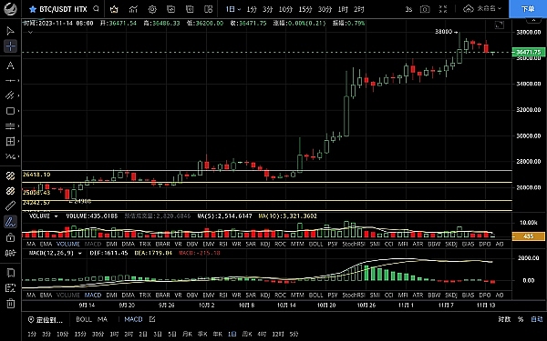 大饼昨日最高插针至37400一线后受阻,整体呈震荡回落走势,低位跌至36200一线支撑反弹,恭喜跟上昨日思路的朋友空单获利700点,目前币价在36500附近运行,四小时级别行情整体处于ma7均线下方受均线压制无法突破,ma7拐头向下,macd空头逐步放量同时双线呈死叉状态,短期行情止跌反弹,若想空头延续必须有效跌破36400才行,目前来看有上行需求,日线级别k线连阴跌破ma7均线,关注日线收线若收线在ma7下方则有延续下行的可能,macd多头转空双线死叉形成顶背离结构,预计后市会走一波日线回踩,思路建议反弹高空为主低多为辅,上方压制36750-37100,下方支撑36000-35300