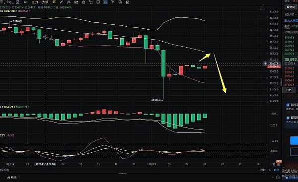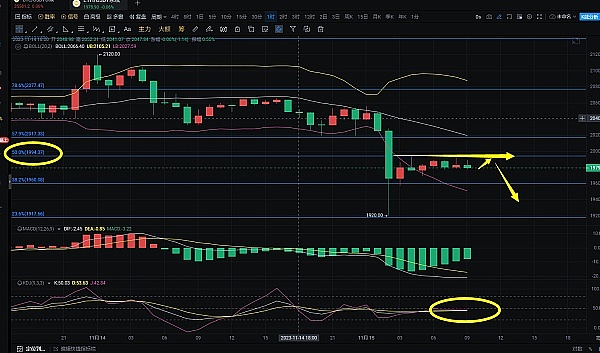 昨天洪伟给出高位看空,以太坊破2000,大饼破35900,结果凌晨向下插针,极速破位,期间利润空间比特币2400点。以太坊150点,看黄金分割线,行情又再次反弹到50%位置但是未能突破,MACD死叉,KDJ并行,结合数据分析,早间操作思路洪伟还是偏向于 看空。