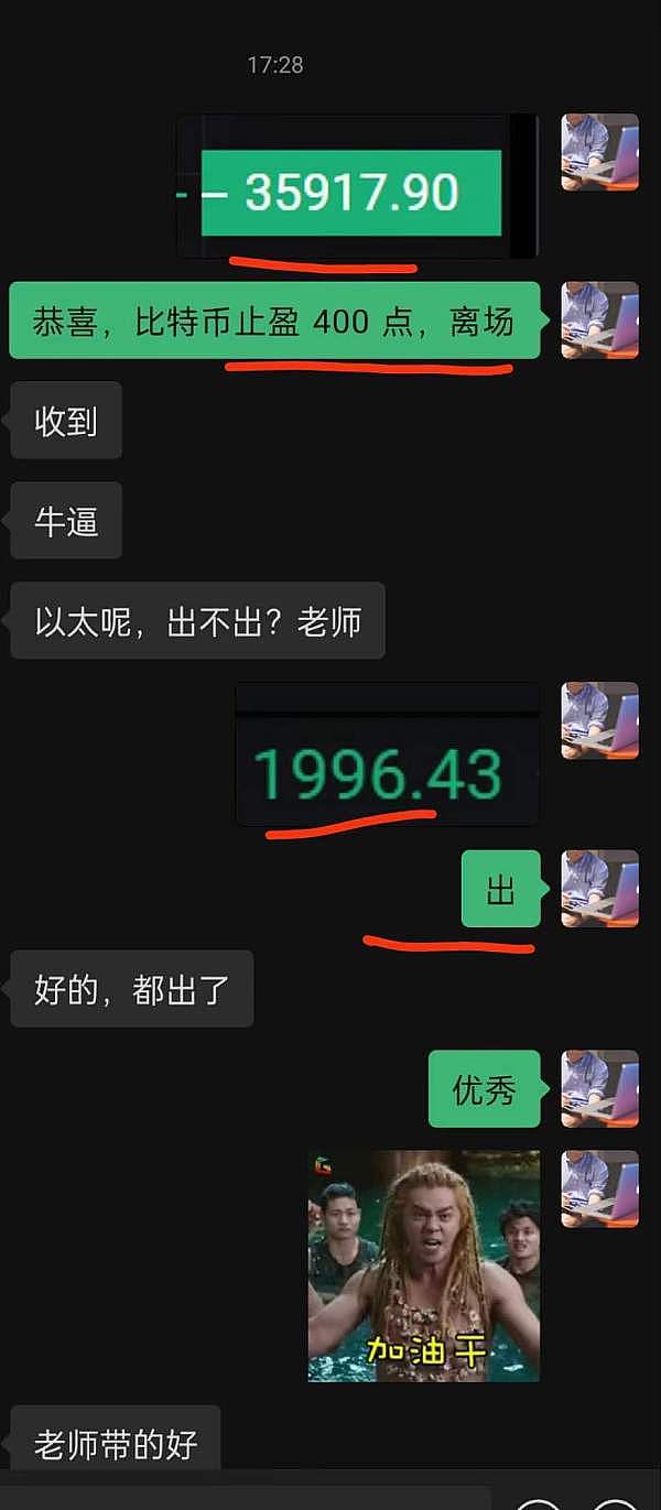 恭喜 早晨比特币布局的多单止盈400点 以太拿下23个点 太给力了