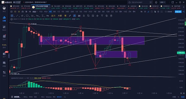 这两天的行情波动加剧,正是大家把握行情赚钱的机会,但同时也要设好止损。经过昨天的一波反弹下跌后,价格再次测试2100的压制并未突破,回踩日线级别并走出大阴线。然而,再次测试中轨的支撑反弹,从技术指标上看,行情再次回踩下方支撑有反弹的趋势。若能突破上方1995-2000的压制,上方区域关注到2020附近的压制。凭借行情反弹和价格上涨,操作情绪复苏,对于行情来说是一枚强心剂,但是否会走出更高点还需要观察后续行情波动。