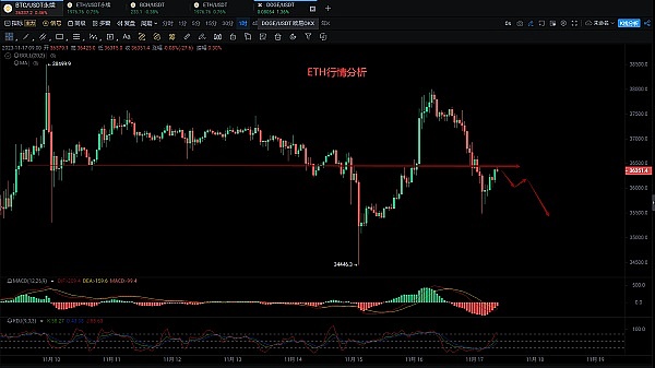 根据当前行情,比特币的日内压力位在36500-36800之间。我们可以选择在这个区域做空,并设定目标为600-1000点。建议分批操作,以降低风险。