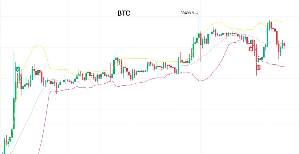 建议是,观察38500两次测试是否破位,如果未破可能存在见顶的可能性,因此多头入场时建议保守一些,至少观察前低位置35500附近。空头现价接近中轨,在盈亏比方面没有太大提升,建议采取轻仓或部分减仓策略,如果价格下降,建议将止损移动至开仓价。