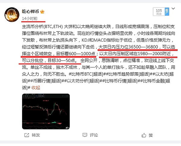 悦盈:比特币68000的空完美落地反弹继续看跌 以太坊破前高看回撤