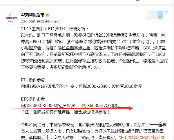 大饼。如李隆昨日所说,回踩便是开多时,35800附近补一次,晚间成功触及目标37000附近,短线走出1200点的拿捏空间,点位依旧精准吻合,盘中理性稳健取舍。李隆聊后市,交易无难事,平心而论,贵在真实。(以太未能联动不幸扫损)