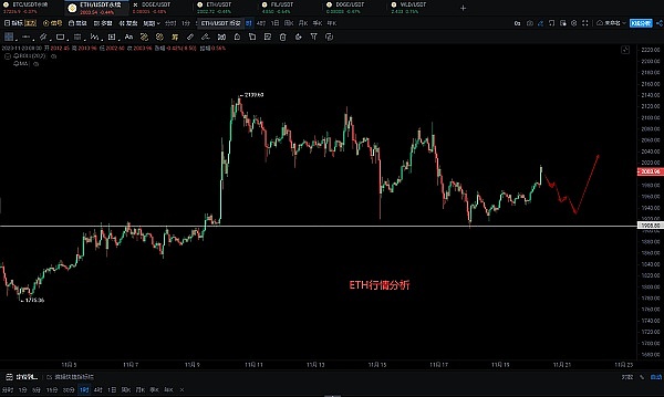 针对BTC,建议空单区间为37300—37500,目标为1000点;针对ETH,建议空单区间为2010—2020,目标为50—80点。
