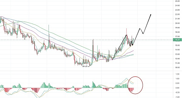 alcx 现报价:16.27u 21年 上线的项目,首次的发行方式是ido 当时的开盘价高达571u 历史最低是10.2u 现在的价格差不多也是处于底部区间,是被sbf影响的代币之一,defi2.0 赛道,日线级别已经走出底部区间 目前加速上涨回踩也是一个不错的买点,日线级别有金叉的预期 现货中线可以埋伏 目标26u