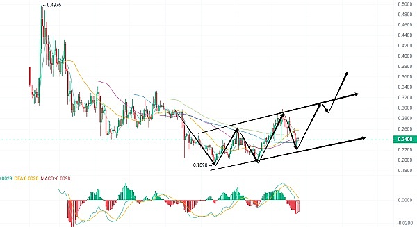 rdnt现报价:0.24u 本来这波上涨趋势就没怎跟涨,W双底形态上来之后回调差不多也是ma均线支撑,4H 金叉有持续放量的预期 ARB生态 现货中线持有,上方目标可看0.3u 第二目标 0.42u