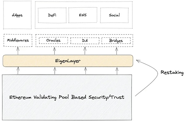 2021 年创立的 EigenLayer,将以太坊级别的信任引入中间件:允许将已经质押在以太坊上的 ETH,再次质押在以太坊中间件上,让其共享到以太坊几乎不可撼动的经济安全性。EigenLayer 首次提出 Restaking 机制,这也是上面提到章鱼网络2.0版本中 $NEAR Restaking 机制的创意来源。