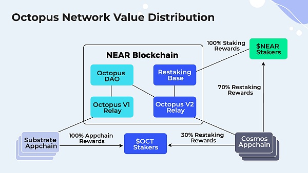 章鱼网络 V2 阶段,在 V1 的基础上,增加了 $NEAR Restaking 机制,使用 $NEAR 为基于 Cosmos SDK 的应用链做 Restaking 从而提供安全性。计划于2023年第四季度计划上线。