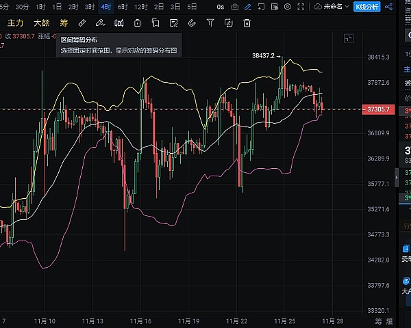 最近,比特币受到CZ等事件的影响,导致币价意外下挫,最低触及37126一线止跌反弹修正。然而,由于近期存在不确定的风险因素,我们预计十一月的最后一周将是多事之秋。月尾将是多空互相博弈争夺关键临界点的节点,从而加剧了洗盘动作的大概率发生。